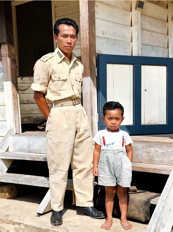 AYAH saya seorang polisi. Beruntung saya punya dokumen foto ketika kecil bersama Ayah yang mengenakan seragam dinas polisi kala itu. Foto di tangga depan pintu tempat tinggal kami di Asrama Polisi, di Siak Sri Indrapura. Ketika itu (sekitar tahun tahun 1956/1957) saya benar-benar merasa sebagai 'anak kolong'. Karena memang demikianlah keadaannya. Asrama Polisi yang semua dindingnya terbuat dari kayu itu merupakan rumah panggung yang panjang. Karena rumah panggung, maka di bagian bawah ada kolongnya.
